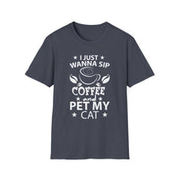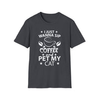 Coffee Lover Cat T-Shirt, Unisex Softstyle Tee for Pet Owners, Gift for Cat Lovers, Funny Coffee Shirt, Animal Lover Apparel, Cat Mom Gift