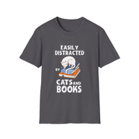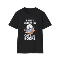 Easily Distracted by Cats and Books - Funny Cat & Book Lover Unisex Softstyle T-Shirt
