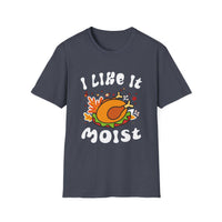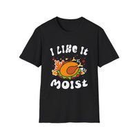 Funny Thanksgiving T-Shirt, Humor Tee for Food Lovers, Gift for Friends, I Like It Moist Tee, Unisex Softstyle T-Shirt