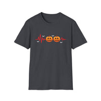 Halloween Pumpkin Heartbeat T-Shirt, Unisex Softstyle Tee, Fall Fashion, Spooky Season Apparel, Halloween Party Shirt, Unique Gift