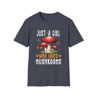 Just a Girl Who Loves Mushrooms T-Shirt | Cute Fungal Tee for Nature Lovers, Gifts for Her, Boho Style, Fun Outfit, Casual Wear